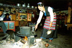 甲火 即“汉式火锅”。象内地火锅一样边吃边煮,主要原料需粉条、海带、蘑菇、猪肉、牛羊肉九子、竹笋等,还要加盐、味精等调料。据说,大型宗教活动时,大喇嘛们要吃此菜。