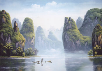 民间刀画是以钢刀作画的一种新的绘画技法,作画时以钢刀为主要工具,采用油画颜料,刀笔结合,交互运用,通过刀具和画笔在纸(或画布)上涂增和刮减色料完成刀画创作。刀画主要是以减色为主,削减产生出的效果,更加具有物体的质感的独特魅力,从而使刀画作品既展现出国画苍劲古朴的深远意境,又呈现了油画反映景物感和立体感等艺术效果,画中的山川更具雄伟秀丽,气韵磅礴,意境深远。