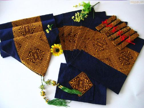 中国壮族传统手工织锦。据传约起源于宋代。以棉、麻线作地经、地纬平纹交织,用粗而无拈的真丝作彩纬织入起花,在织物正反面形成对称花纹,并将地组织完全覆盖,增加织物厚度。其色彩对比强烈,纹样多为菱形几何图案,结构严谨而富于变化,具有浓艳粗犷的艺术风格。用于制做衣裙、巾被、背包、台布等。主要产地分布于广西靖西、忻城、宾阳等县。传统沿用的纹样主要有二龙戏珠、回纹、水纹、云纹、花卉、动物等20多种,近年来又出现了“桂林山水”、“民族大团结”等80多种新图案,富有民族风格。 壮族是一个历史悠久的民族,壮族古代叫俚族、僚族、俍族和土族,从宋代起,才改称为僮,现在又改称为壮。壮族有很古老的历史,世世代代居住在我国西南部的广西、云南、贵州和湖南部分地区。壮锦又称“僮锦”、“绒花被”,较厚实。被誉为中国四大名锦之一的壮锦是广西民族文化瑰宝,这种利用棉线或丝线编织而成的精美工艺品,图案生动,结构严谨,色彩斑斓,充满热烈、开朗的民族格调,体现了壮族人民对美好生活的追求与向往。《广西通志》载:“壮锦各州县出,壮人爱彩,凡衣裙巾被之属莫不取五色绒,杂以织布为花鸟状,远观颇工巧炫丽,近视而粗,壮人贵之。” 壮锦是在装有支撑系统、传动装置、分综装置和提花装置的手工织机上,以棉纱为经,以各种彩色丝绒为纬,采用通经断纬的方法巧妙交织而成的艺术品。壮锦又称“僮锦”、“绒花被”,较厚实。壮锦最适合作被面、褥面、背包、挂包、围裙和台布等。壮锦是用棉或麻的股纱作经线,以不加捻或者微捻两种彩纬织入起花,在织物正面和背面形成对称花纹,并将地组织完全覆盖,增加厚度,还有用多种彩纬挑出的,纹样组织复杂,多用几何形图案,色彩鲜明,对比强烈,具有浓艳粗犷的艺术风格。