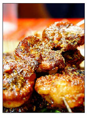 竹筒焖鸡杂,选一节老黄的竹筒,一头留节、一头开口当“锅”。将洗净的鸡肝、肫及杂碎剁碎,配以香菇、竹叶菜、青薄荷、蒜泥、草果面、核桃仁茸及食盐拌匀,全塞进竹筒中。