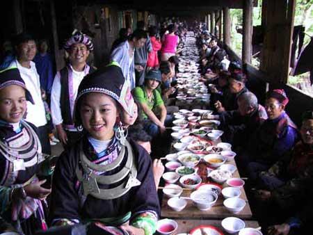 侗族的饮食禁忌主要是:不可坐在门坎上吃饭,忌讳看别人吃东西;正月初一不生火;祭祀期间不许外人入寨;丧期孝子忌荤吃素,但鱼虾不限。