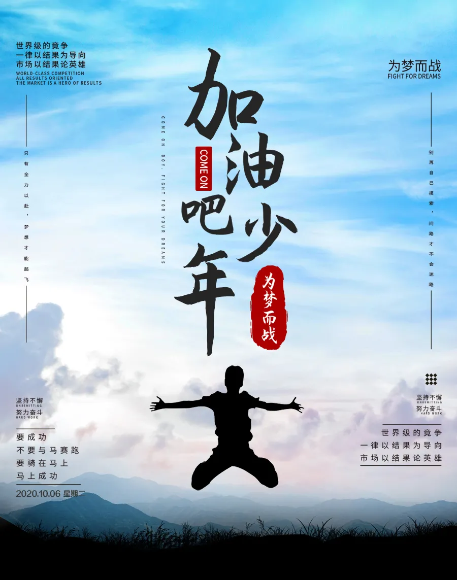 无论你睡多晚,总有人比你更晚;无论你起多早,总有人比你更早;无论你多努力,总有人比你更努力!不管你有多辛苦,总有人比你更辛苦!“放弃”二字15笔,“坚持”二字16笔,放弃和坚持就在一笔之差!差之毫厘,失之千里!