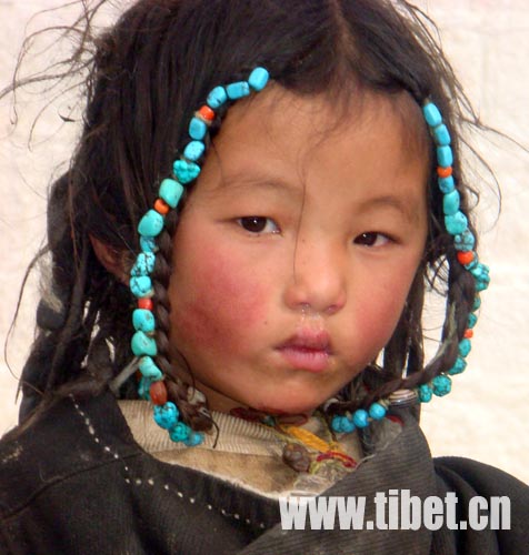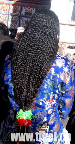 藏族妇女自古以来以长发为美,对头发的装饰更是表现出了她们追求美的一种独特方式。点缀有各种金、银、珊瑚、玛瑙、松石等名贵饰物的长发或垂于身后,或置于胸前,或盘在头顶,这种多姿多彩,浓郁特色的妇女头饰文化形成西藏特有的一道文化风景线。