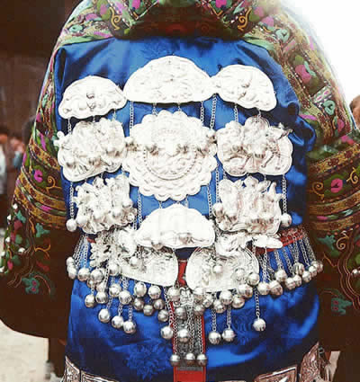 苗族的背饰包括银背吊、银背牌等。