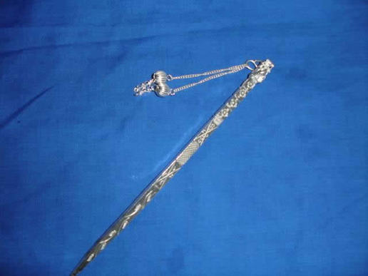 插针的类型很多,有叶形银插针、挖耳银插针、方柱形银插针、钱纹镶珠银插针、几何纹银插针、寿字银插针、六方珠丁银插针等等,数不胜数。