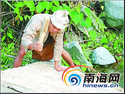 黄运英说:“制作树皮布,一定要选好树种,并不是每种树都可以制作树皮布,见血封喉树是最佳树种。”在当时,见血封喉树就如今天的橡胶、槟榔树一样,随处可见,高高大大。