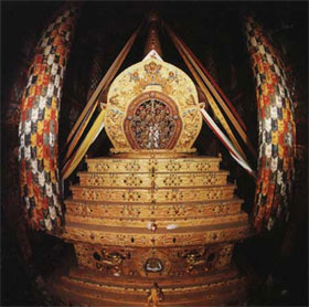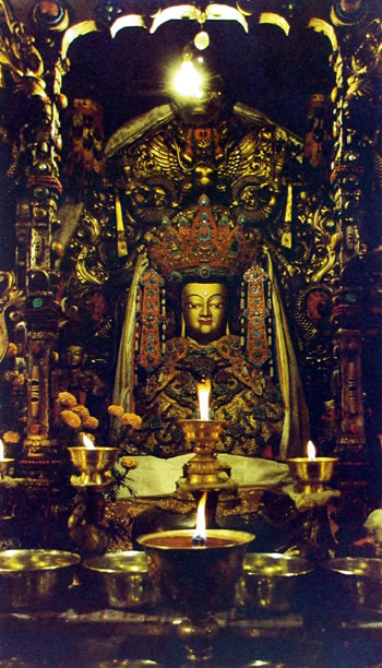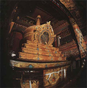 3.许多寺庙带有行政职能的性质。西藏寺庙有独立的经济,占有庄园,一座寺庙也就是一个经济实体。哲蚌地占有庄园185个,耕地面积5.1万余亩,牧场300处以上,农、牧奴2万余人。全藏的40%的耕地归寺庙所有。这样,寺庙除了参加地方政权之外,还要统治本寺的辖地。如扎什伦布寺的班禅“拉章”,负责管理班禅辖区21个宗(谿)、6个谿卡、10余万农奴。班禅“拉章”,有行政权和司法权。“拉章”建筑在措钦大殿的后面,高4层,内设“益仓”(秘书处)、桑加列空(审计处)和各庄园的管理机关。班禅日光宫位于建筑的最高处,内有卧室、经堂、佛殿和辅助用房。昌都强巴林寺的帕巴拉呼图克图“拉章”,管辖50余个属寺和5个宗、7600余户属民。哲蚌寺的噶丹颇章也属于这类性质的建筑。因此,寺庙中的“拉章”建筑十分重要,随着活佛地位的不同,权限也不一样。但即便是地位较低的“拉章”,也有管辖自己封地属民的职能。