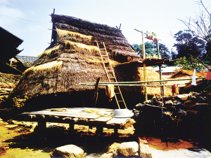 西盟佤族自治县的佤族民居不像沧源那样高大,苫草盖的已经很少了。前几年新建的房子,都是水泥波浪瓦屋面,墙壁也用木板围护。有的设晒台,厨房单建,也是以火塘做饭,粮食都装入木柜,放在厨房,平时围火塘吃饭、烤火、聊天。