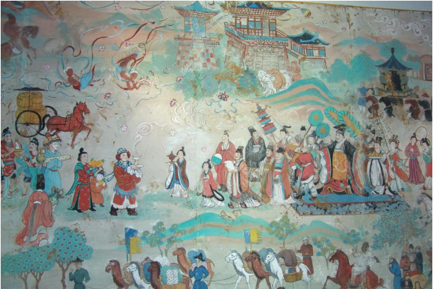 隋炀帝到达张掖之后,西域二十七国君主与史臣纷纷前来朝见,表示臣服。各国商人也都云集张掖进行贸易。隋炀帝亲自打通了丝绸之路,加强中原与西方的各个方面的联系与交往。这是千古名君才能有的功绩。为炫耀中华盛世,隋炀帝杨广在古丝绸之路举行了万国博览会。游人及车马长达数十百里,这是举世创举。由于丝绸之路的畅通,不仅使张掖的国际贸易市场更加繁荣昌盛,还促进了中原一带贸易市场的兴起和发展,如关中的歧州(今陕西凤翔)、西京长安、东都洛阳等。从此,西域的高昌、焉香、龟兹、疏勒、于阗、康国、安国、米国、吐火罗等国家的商贾使者来往于长安、洛阳一带,络绎不绝。隋炀帝还派司隶从事杜行满出使西域,从安国带回五色盐。又派云骑尉李昱出使波斯,回国时,波斯的使者、商人也随至中原。随后隋朝成为更开放的国度。