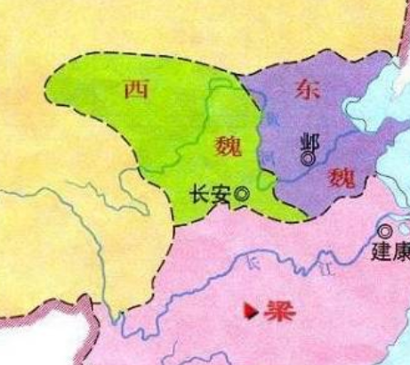 高欢掌握北魏政权之后,北魏的皇帝更换就更快了,但不管怎么换大权都是高欢掌握。不过并不是所有皇帝都愿意当傀儡的,孝武帝元修就不愿做高欢的傀儡,所以在534年投奔长安的关陇集团的宇文泰。元修这样做无非是从狼穴到虎口的行为。自己没有实力还乱跑,到到哪都是傀儡。元修走了之后,高欢又重新立了个皇帝。而宇文泰也支持元修称帝。就这样北魏出现了两个皇帝,他们都自称为正统,北魏正式分裂。按照地理位置,高欢掌控的成为东魏,宇文泰掌控的被称为西魏。当时南方是南梁,这也算是三国时代了,是我国的第二个三国时代。