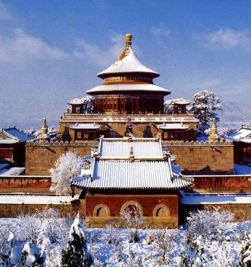 由于承德是清代皇帝一个重要活动场所,所以在短短的60多年间,兴建起寺庙12座。这些庙寺建在避暑山庄外围。其中的八座庙隶属于清廷理藩院管理,因此称为“外八庙”,后成了避暑山庄外围寺庙的代称。如果把避暑山庄比作一轮明月,那么围绕它所建的外八庙就是它的众星,寓意众星捧月,百川归海。