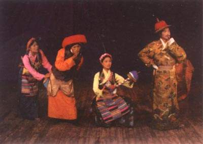 可怜的贡桑德钦夫妻,知道这门亲事不合爱女的心意,可是,谁又敢得罪山官老爷呢?如果稍有忤逆,后果将不堪设想。朗萨本是一个善体人意、十分孝顺的姑娘,她看着无可辰何、老泪纵横的年迈父母,心中十分不忍,只得坐起身来,拭去泪水,将婚事答应下来,由自己去品尝这一杯生活的苦酒。朗萨很快被抢亲到山官家。