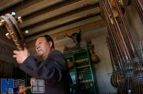 新疆的维吾尔族是个能歌善舞的民族,乐器是他们生活中不可缺少的伴侣,维吾尔族的乐器丰富多彩,共有十几种,分为弹拨、拉弦、吹管和打击四类,其中弹拨乐器占多数主要有“弹拨尔”、“热瓦甫”、“都塔尔”、“卡龙琴”;拉弦乐器主要有“艾介克”、“胡西塔尔”、“萨塔尔”;吹管乐器主要有“苏奈尔”(唢呐)、“乃依”(笛子);打击乐器主要有“达甫”、“纳合拉”、“塔西”(石头)、木勺、扬琴、手鼓等。