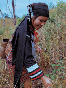 “砍山栏”的耕作过程是:正月,上山选择林木茂盛、土层深厚、潮湿,松软且表土呈灰黑色的山地,作上标记;2月,用钩刀砍下大树的树枝,任其散于地上;3~4月间,树叶干枯后,引火焚烧,继而清除未烧尽的残枝,不经翻土,在雨季来临的时候下种,播种时,男子用一根长约1.5米的尖木棒在前面戳洞,妇女随后边放谷种边平土,一个洞里一般放5~6粒谷种;以后,用锄或铲清除2~3次杂草;9~10月稻谷成熟后,逐穗割下收藏。这是“合亩制”地区的情况。