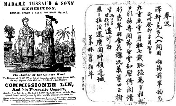 英国的杜莎夫人蜡像馆中林则徐夫妇蜡像 林则徐书信手迹