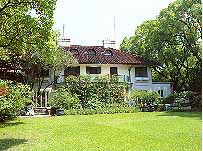 主楼始建于1920年,是一幢白墙红瓦的西式三层别墅,楼前是草坪,屋后是花园,四周樟树环绕,终年青翠。楼下客厅挂着孙中山遗像和毛泽东看望宋庆龄时的合影,楼上是宋庆龄的卧室和办公室,现陈设着她生前用过的物品。
