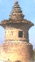 净藏禅师塔坐落于河南省登封县城西北6公里会善寺山门的西坡之上。唐天宝五年(746年),净藏禅师逝于会善寺,之后建塔埋葬,这是中国最早的八角形砖塔。塔为砖砌,平面呈八角形,单层重檐,高约9米。塔身立于高大的台基之上,下层为须弥座,其上塔身各角均立有凸出壁面呈五角形的倚柱,柱头承托一斗三升斗拱,两柱之间用人..