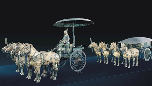 秦铜车马,秦青铜器,中国一级文物,1980年12月陕西省西安市临潼区秦陵封土西侧出土,现收藏于秦始皇帝陵博物院。