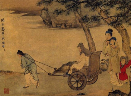某年冬天,继母给自己的孩子做棉袄,而假装给子骞棉袄,其实内里填的是芦苇,所以他寒冷无措。一日父亲坐车带他们兄弟三个外出,让闵子骞在前边掌鞭赶车,闵子骞因寒冷饥饿无法驭车,马车滑入路旁的水沟内。