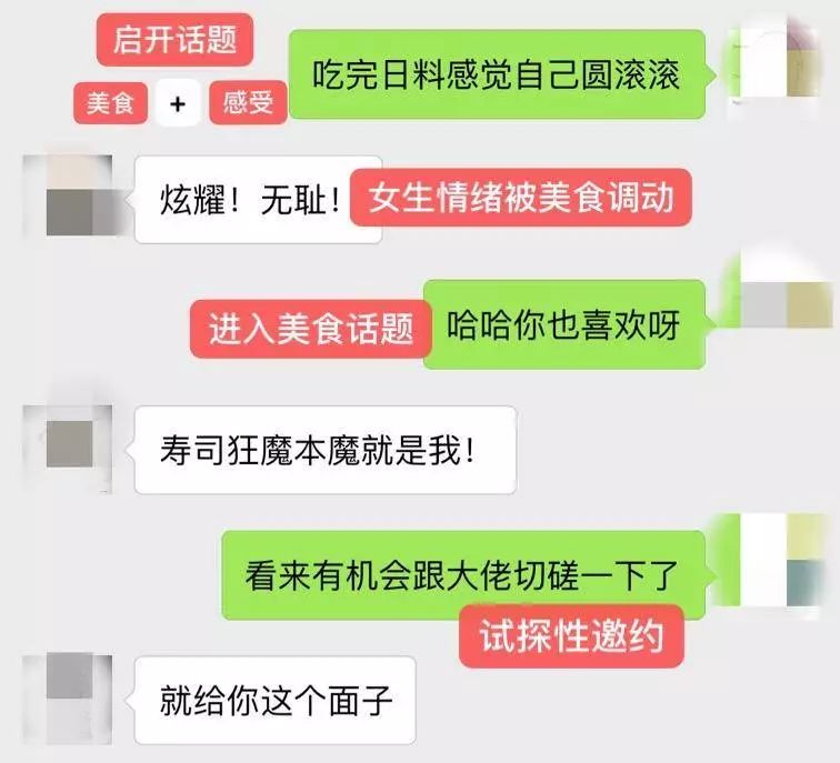 聊天开端,用美食和个人感受开启话题通常万无一失,毕竟女生大多是天生的吃货。