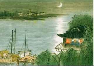 诗的一、二两句是叙事,写自己从汴京顺着运河返乡的经过。京口,即今镇江市,在长江南岸,瓜洲,又叫瓜埠洲,在长江北岸,与镇江市隔江相望,是大运河与长江汇流处。诗人站在瓜洲古渡,望着一水相隔的京口,思乡之情尽含于“一水间”三字之中。《古诗十九首》中表示相思的名句有“盈盈一水间,脉脉不得语”;白居易的《长相思》也是从汴水写到瓜洲,所谓“汴水流,泗水流,流到瓜洲古渡头,吴山点点愁。思悠悠,恨悠悠,恨到归时方始休,月明人倚楼”。王安石在此是不着痕迹地化用了这些古典名句,这也是宋诗“以才学为诗”的表现,从中也可以看出安石在鎔铸经史上的功力。