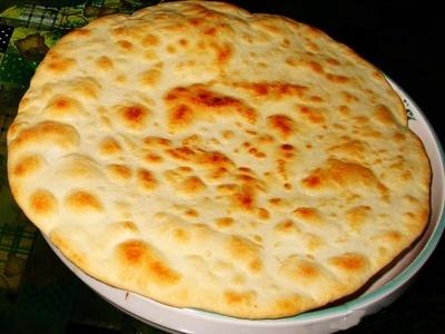 擀馍是一种圆形、特性的硷面饼。将硷面揉好,擀成薄饼,烙熟,趁热抹上水、醋、油混合液,一张一张摞起来,用布盖好,放约半小时食用。
