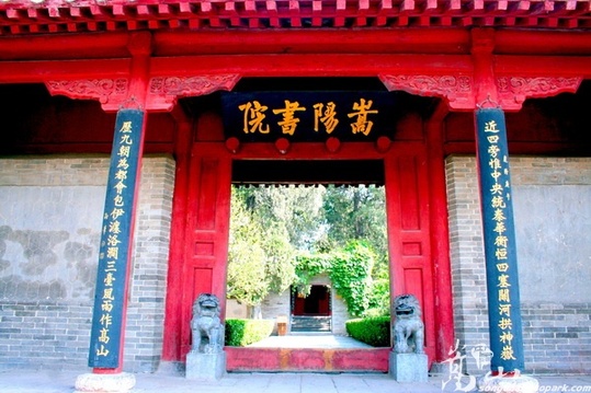 以突出儒家文化为特色的嵩阳书院位于登封城北侧的太室山前高埠上,是我国宋代最高学府之一,与湖南的岳麓书院、江西的白鹿洞书院、河南的睢阳书院,并称为我国著名的“四大书院”。宋代名儒程颢、程颐、司马光、范仲淹、朱熹都曾在此讲学。主要文物有汉封将军柏、《大唐嵩阳观纪圣德感应之颂》碑及历代碑刻等。