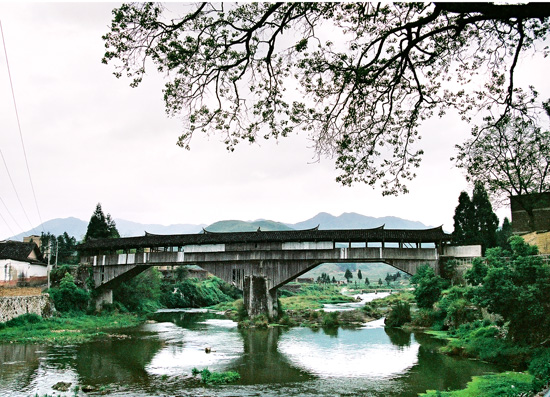 棠口乡千乘桥位于棠口村水尾。始建于南宋理宗年间,清嘉庆二十五年(1820)秀才周大权等人再次募建。南北走向,全长62.7米,宽4.9米,桥面距水面高度9.7米。东有石阶40级,西有15级。一墩二孔,墩呈船形,为花岗岩石砌筑,墩尖端雕刻为鸡头形状。每孔跨度27.5米。桥屋有24间99柱,悬山飞檐翘角顶,桥中设神龛,祀五显灵官大帝。两边有条板椅,供行人憩息。两旁尚存档风板,以御风雨侵袭。建桥主绳宁邑张成德、张成来,副绳宁邑何开发、何奶兴;石匠宁邑张成送。距桥十米处有清乾隆四年(1739)的石坊一座及八角亭、林公庙、祥峰寺和两口龙井,附近还树有新四军三支队六团北上抗日纪念碑。千乘桥若长虹卧波,雄伟秀丽,桥志铭中“架木凌空,上拟虹横百尺;临渊累石,下同鼎峙千秋”之句是该桥的最好写照。??