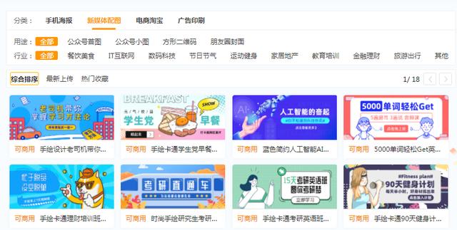 网站里面有各种各样的类型可供选择,例如一些手机海报、新媒体配图、电商淘宝图片等应有尽有,素材也丰富多样,而且可以商用哦!