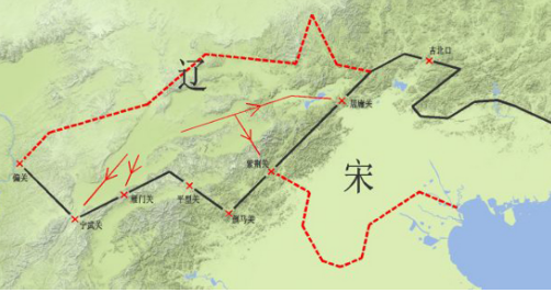 图8所示,北宋只要能占据华北平原的七州,就等于控制了内长城,那么北方的防御体系将提升数个档次。因为原来防御的是“面”,而且是在平原上,北宋步兵很难抵御骑兵。如果有了内长城,只需要防御几个“点”就可以,以北宋的国力完全没有问题。而且以当时游牧民族的攻城能力来看,对长城的威胁并不大。