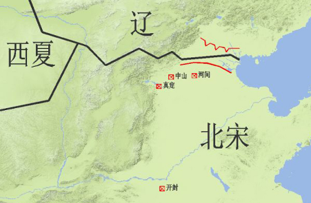 图4所示,白沟河虽然可以阻挡,但是到了冬天会结冰,辽军就可以任意突破。穿过边界线后,北宋还有三座军事重镇真定,中山及河间。真定主要防御从太行山西边来的敌军,中山和河间则主要防御南下的敌军。看似有用,其实在广袤的平原上效果不大,敌军有强大的骑兵优势,可以围点打援,这三座城池只能拖延下时间,再之后敌军可直捣开封。