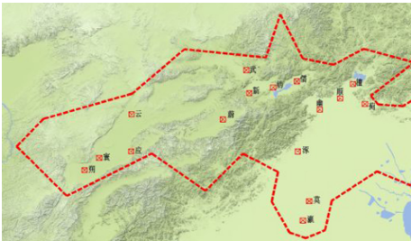 图1所示,红色虚线的范围就是幽云十六州,大概包括山西北部、河北北部、北京以及天津部分地区。这十六州分别为幽州(如今北京),顺州(如今北京顺义),儒州(如今北京延庆),檀州(如今北京密云),蓟州(如今天津蓟州),涿州(如今河北涿州),瀛州(如今河北间),莫州(如今河北任丘),新州(如今河北涿鹿),妫州(如今河北怀来),武州(如今河北宣化),蔚州(如今河北蔚县),应州(如今山西应县),寰州(如今山西朔州东),朔州(如今山西朔州),云州(如今山西大同)。