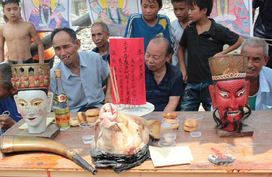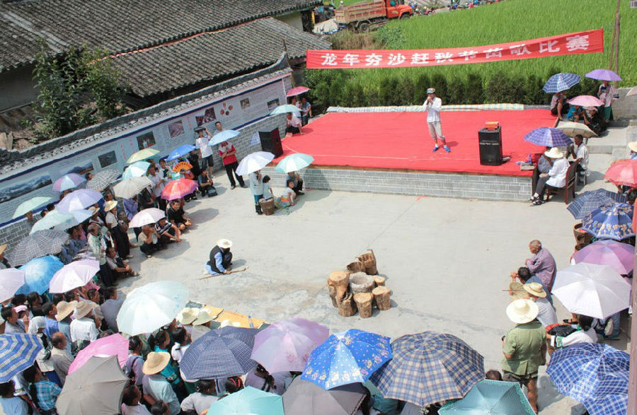 1、我们是上午赶到了夯沙县,正巧这里正在进赶秋节的一个活动:“苗祖对山吕洞山太阳历学术研计会”“暨龙年夯沙赶秋节”。场面小热闹哦,而且个个穿着苗族传统服装,大鼓大舞。