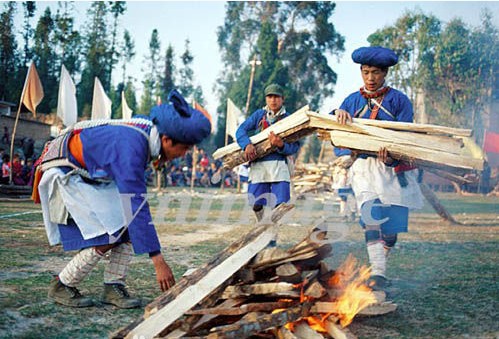 一会儿落下。还把通红的火球捧在双手,在脸上“擦洗”几下,然后在手上飞快地翻滚揉搓。除此,节期还举行丢烟包、跳舞、对歌、荡秋千等活动,给节日增添了无穷的情趣