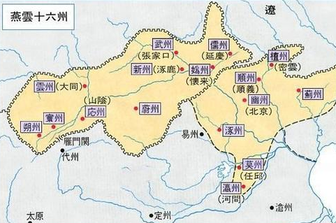 所谓燕云十六州,包括今天的山西雁门关以北、河北北部和北京一带,著名的明代长城就建于这一线。从军事上说,燕云十六州地势险要,是易守难攻的地方。