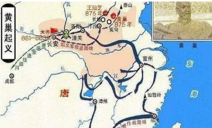之后,黄巢再度率军回师北上,先克潭州,后下江陵,再度挺进中原,并于广明元年(880年)十一月,黄巢攻陷东都洛阳,休整十余天后再度率兵西进,在仅用六天攻克潼关后,率兵直扑京师长安。