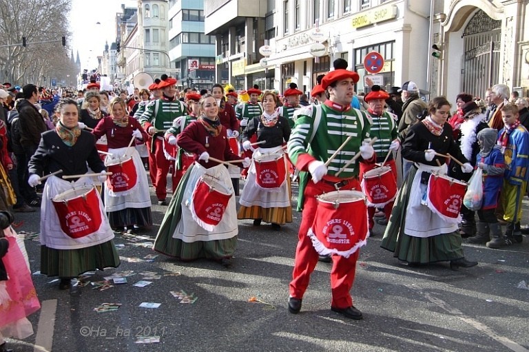 尤其在莱茵狂欢节的中心地区科隆、杜塞尔多夫和美因茨,“狂闹”随处可见.从星期四女人节到玫瑰星期一再到谢肉节星期二,人们脱下西装换上鲜艳夺目的奇装异服尽情欢庆、又唱又跳,