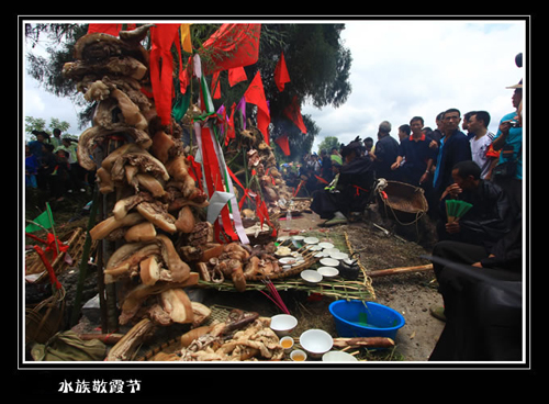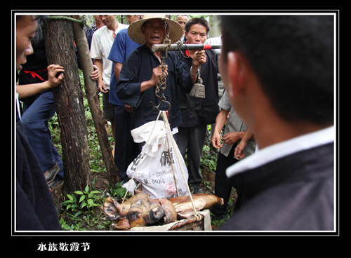 参加“敬霞”的每支宗族不管人多少、不分贫富大家出钱购买120斤的大猪,“敬霞”开始前要过秤,多的不要,同时规定参加霞节的每个宗族内不能通婚。诠释了古时的水家人就有富人和穷人要平等、近亲通婚不好的理念。