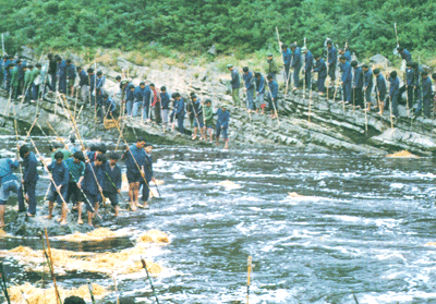 不一会儿,只见钢叉飞刺,一条条大鱼被杀起,欢呼声此起彼伏。夜幕降临,苗胞们架火煮钎,相互在歌声中名敬酒,预祝当年吉祥顺利和取得好收成。未婚男女双双藏入夜幕,对歌诉情。整个活动声势浩大,风格独特,别有情趣。