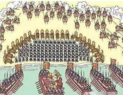 在现有的史料中,并没有明确记载刘裕是何时发明的“却月阵”。但“却月阵”本身是由水军和步兵共同组成的,其中步兵又以战车为主,所以通过对水军和战车进行分析,可得出一些端倪。