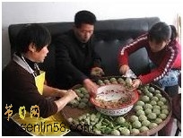 在温州这一带有吃绵菜饼的习俗,绵菜饼顾名思义是绵菜做的饼,也有人称为清明饼,绵菜是照温州话翻译过来的,原来它的学名叫曲鼠草,是在清明时节才会有的.做绵菜饼可是很有讲究的,先要去地里采摘绵菜,(绵菜这东西可不是种的,是每到这个清明时节就会自已长出来的,)然后洗净晾干,放入倒臼中,(倒臼就是一个石头做的一种工具,以前他们用来捣年糕用)捣碎后,再放入米粉,(通常是八斤白米粉,二斤糯米粉)再加入适量的水,要把绵菜全部均匀的融入到米粉中就可以了,倒好后我们就要准备里面的馅,馅也是其种一道重要的工序,我们这里最常见的就是用鲜嫩的竹笋、豆腐、猪肉、咸菜(或者萝卜丝),抄好,等馅冷了就可以包了,我们把绵菜饼包好后下面一定要放一张柚子叶,一、是避免粘锅、二、也是最重要的,是因为放了柚子后,这个绵菜饼里会多一种柚子的清香,好吃起来口感好多了,包好后放到蒸笼里蒸上25分钟即可.