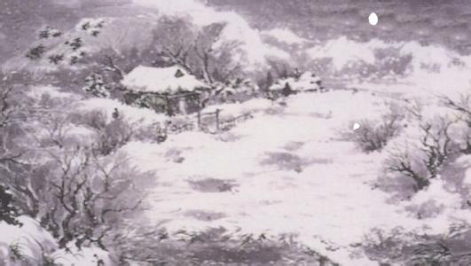 前两句,写诗人投宿山村时的所见所感。首句“日暮苍山远”,“日暮”点明时间,正是傍晚。“苍山远”,是诗人风雪途中所见。青山遥远迷蒙,暗示跋涉的艰辛,急于投宿的心情。次句“天寒白屋贫”点明投宿的地点。“白屋”,主人家简陋的茅舍,在寒冬中更显得贫穷。“寒”“白”“贫”三字互相映衬,渲染贫寒、清白的气氛,也反映了诗人独特的感受。