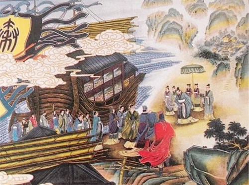 秦始皇二十八年(公元前219年),这位一心想传位万世的皇帝在“南登琅邪”、“留三月”的海上巡游时,接到了齐人徐福等方士的上书,说海中有“三神山”,于是,秦始皇便“发童男女数千,入海求仙道”。秦始皇派出了一支多达三千人的庞大船队,去探求“三神山”。