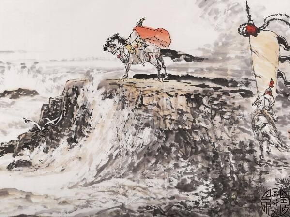 开头两句是起笔、交代,领起全篇。既写出了诗人的来向,东临;登临的目的,以观沧海;又点明了作者登临俯瞰的地点,碣石。碣石山高,沧海无际,诗虽没有具体描写景色,但已经展现了一幅高远辽阔的图画。碣石山是古今闻名的形胜之地,当年秦始皇、汉武帝都登临过此山。而今曹操跃马挥鞭,登临观海,其心境自然是昂扬奋发的。这两句虽是纪行,却为全诗的感情定下了高昂的基调。