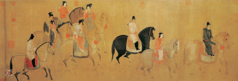 绘画文化古代国画名画之唐·张萱所作《虢国夫人游春图》欣赏