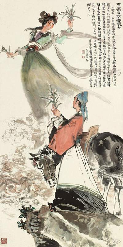 国学诗中的这位女神异常艳丽:“密发虚鬟飞,腻颊凝花匀。团鬓分珠巢,浓眉笼小唇。弄蝶和轻艳,风光怯腰身”。值得注意的是这为兰香女神是按照李贺的美学标准乃至李贺的形象塑造的:李贺诗“通眉”,这位女神也是浓眉:“浓眉笼小唇”;李贺不到二十岁就落发:“日夕著书罢,惊霜落素丝”(《咏怀》),所以他羡慕发密:“密发虚鬟飞”;李贺很瘦弱,这位女神也是“风光怯腰身”。不仅如此,李贺诗歌中的美人也大多有这种诗人自我崇拜的倾向,如洛姝真珠:“浓蛾叠柳香唇醉”;《恼公》:“添眉桂叶浓”,“发重疑盘雾”;《贝宫夫人》:“长眉凝绿几千年”。明代诗论家胡震亨云:“李长吉师心,故而作怪”(《唐音癸籖》)这种凭自己主观感觉而改变客观事物面貌的“师心”倾向,颇像今日毕加索的绘画,也是李贺诗歌一个很显著的特征。qbenv国rj3ai学duiqo网a987d
