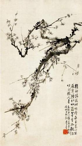 李方膺所画的梅花用笔苍劲老辣,构图简练疏朗,挥毫纵横,水墨淋漓,枝干瘦硬,花蕾了了,有大片的留白。苏东坡是画梅的绝顶高手,但郑板桥被李方膺的梅花深深吸引,竟如此叹曰:“东坡,与可畏之”,评价之高,无以复加。“挥笔落纸墨痕新,几点梅花最可人,愿借天风吹得远,家家门巷尽成春”,这是他一幅腊梅画上的题诗。与郑板桥在“衙斋听竹图”中的题诗“衙斋卧听萧萧竹,疑是民间疾苦声;些小吾曹州县吏,一枝一叶总关情。”一样体现了对百姓的关心。