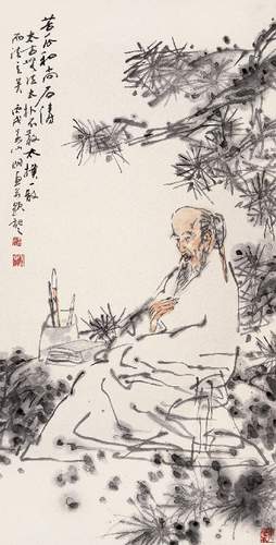 中国画之发展及其演变,直接融汇儒释道三家思想,而最能影响开拓中国画艺境界者,就是佛教禅宗思想。禅宗之超越三眛,画人之心胸洒脱,默契神会,如唐代,栖心禅悦,遁迹辋川而工诗书画的王维,其山水诀云:“手亲笔研之余,有时游戏三昧,岁月遥永,妙悟者不在多言”。这是画人游心物外而不被画作者,可谓禅画超越之机,“三品”而外之境。禅师谓心身脱落,露露堂堂,画人所谓如置身太空,了然无碍,“画意禅心两不分”。