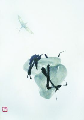 ?古代的重阳节,人们皆喜饮菊花酒。齐白石也以《菊酒》贺节,左上部是一只淡墨画的玻璃瓶,内插一朵带着墨叶的红菊;左下部以赭色画一只陶制酒壶和一只酒杯。菊花指意壶中所盛是以菊花浸泡的菊酒。此类作品,齐白石还有多幅,如1948年作的《菊酒延年》:上部以赭色画一个盛酒的陶坛,坛颈系着几枝带叶的红、黄菊花;下部是一满篮菊花,淡墨的叶,烘托着红、黄、朱磦色的花,篮的提手上,立一只小昆虫,满幅生机洋溢。齐白石在《九日岩上老人小饮八砚楼》一诗中唱道:“身健那容负佳节,性孤偏自爱良朋。”