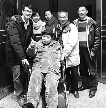 本报记者唐湘岳(右二)与轮椅上的阳盛全合影。